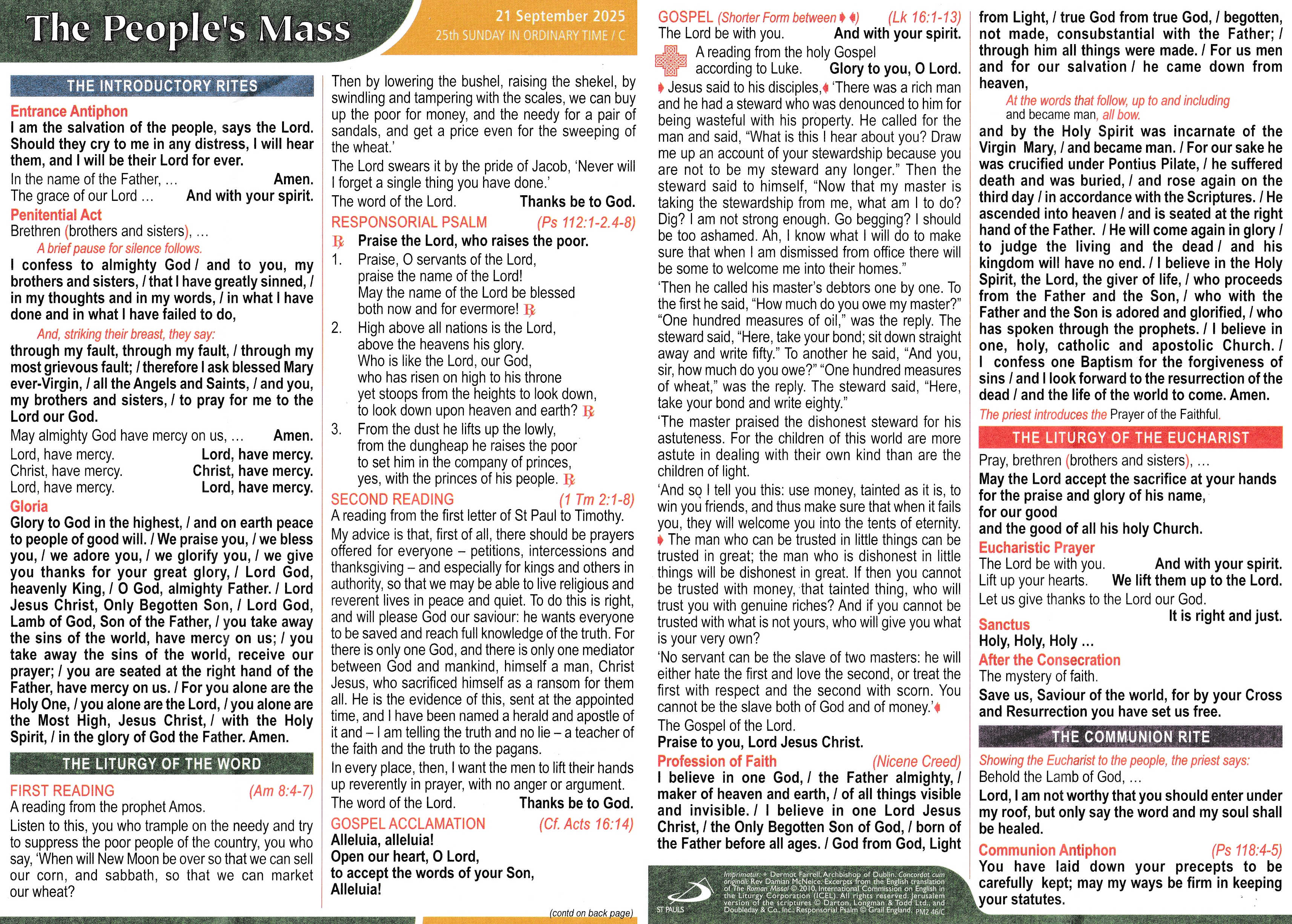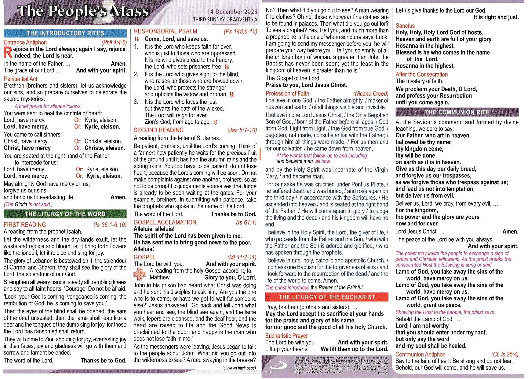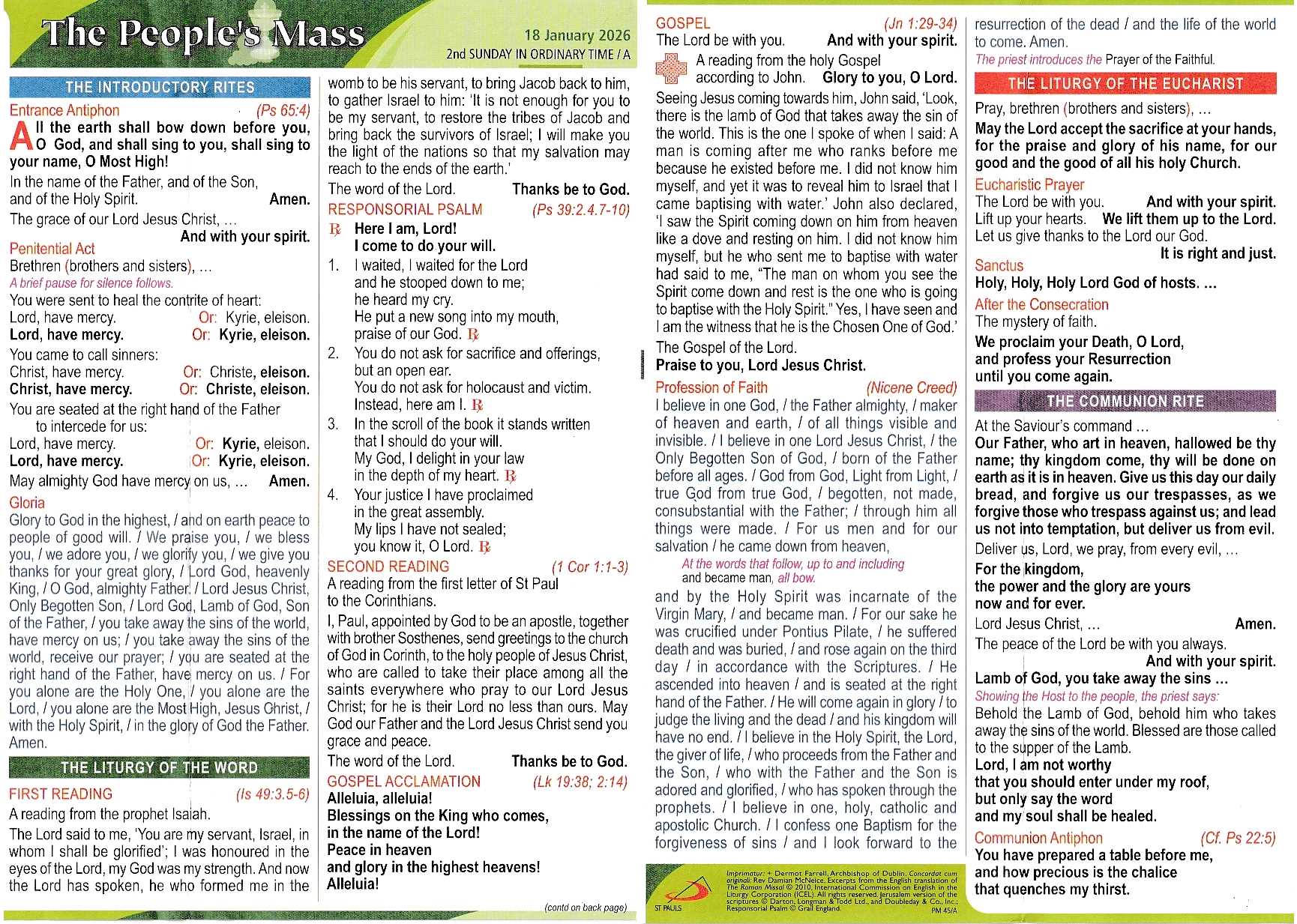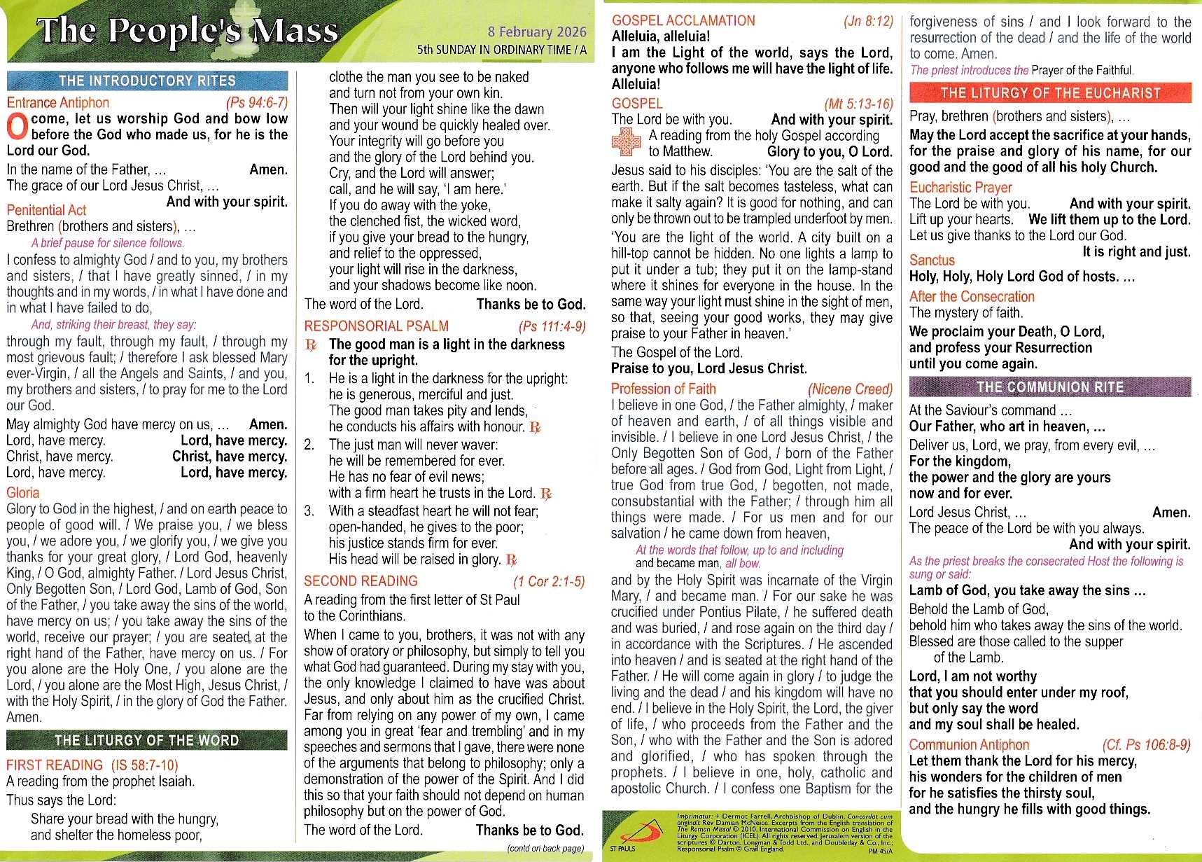 This will allow you to print each People's Mass or local newsletter should you wish to. The latest versions are in bold.