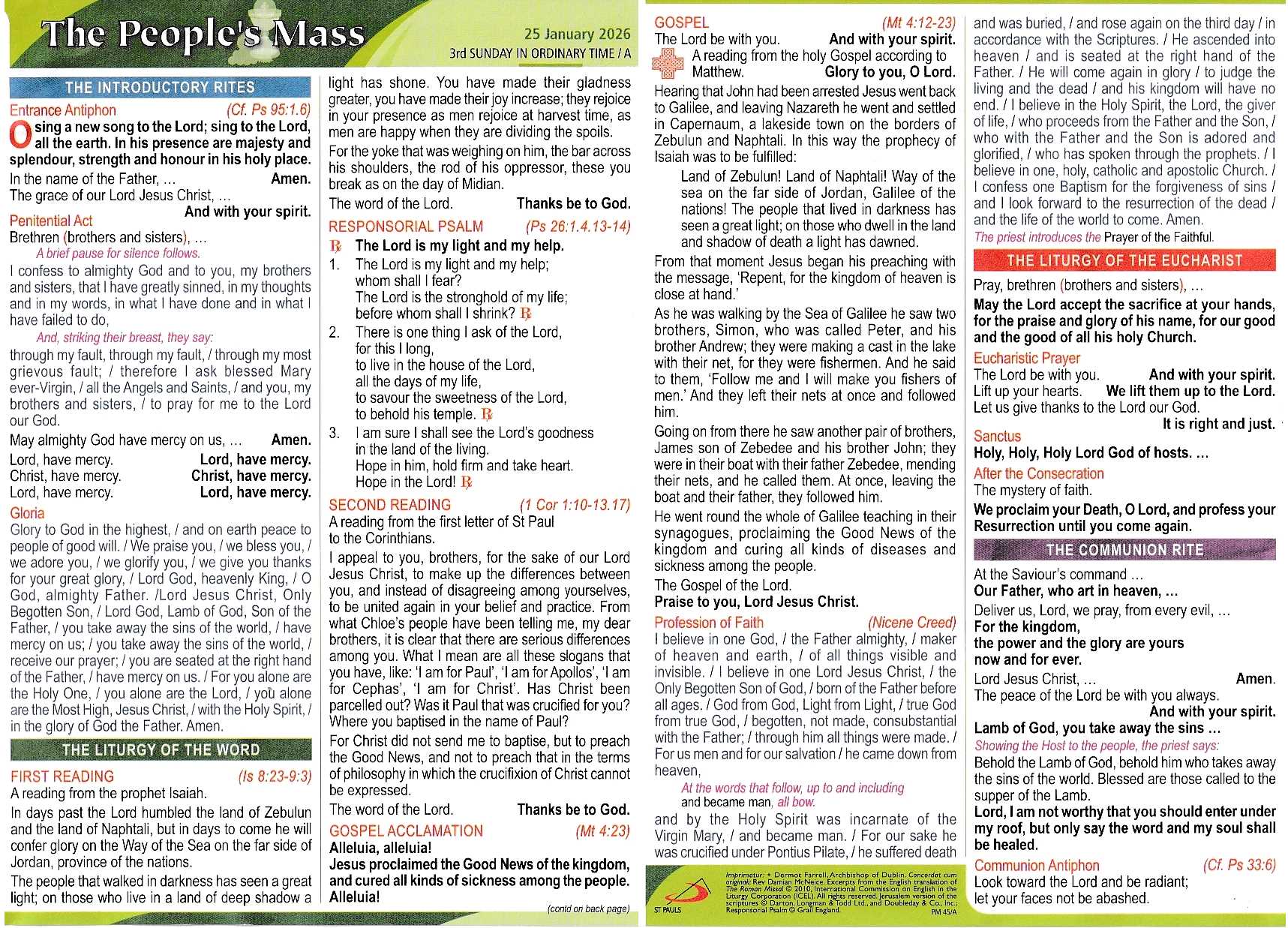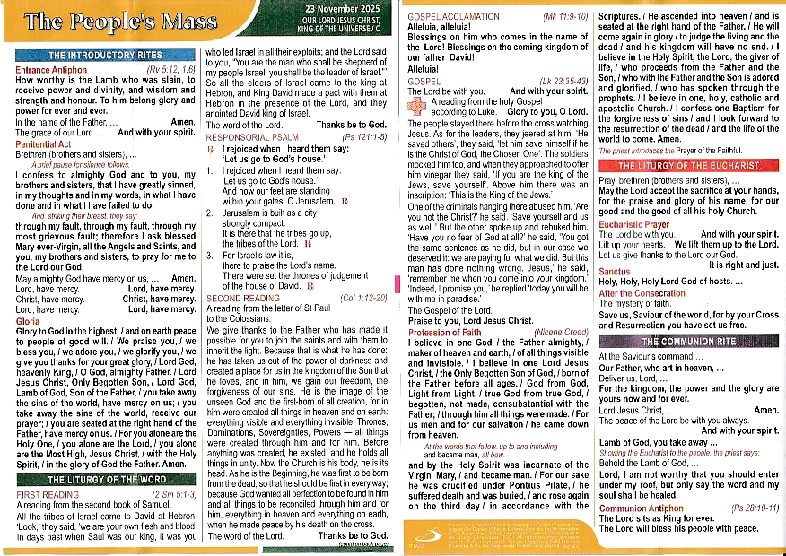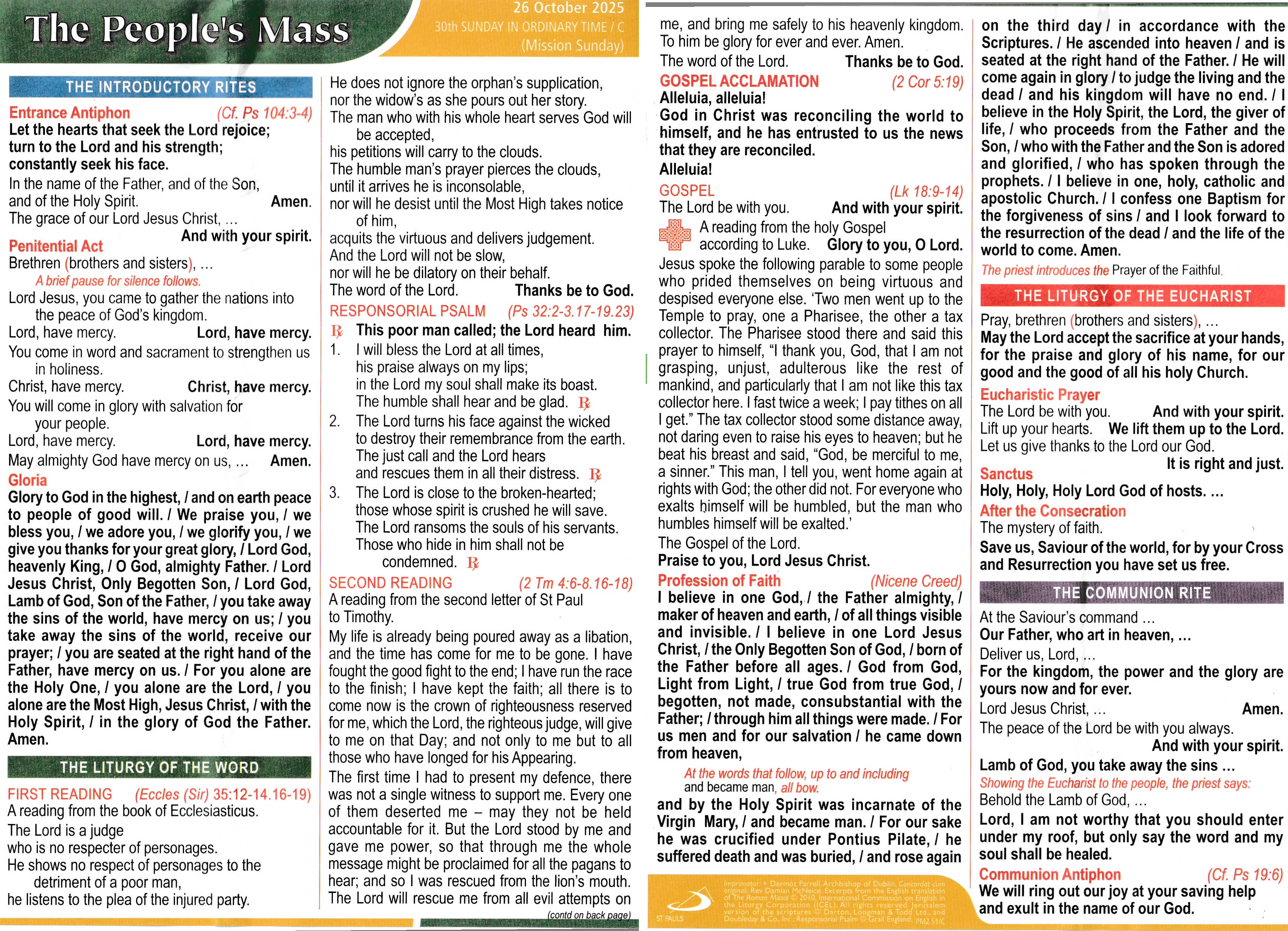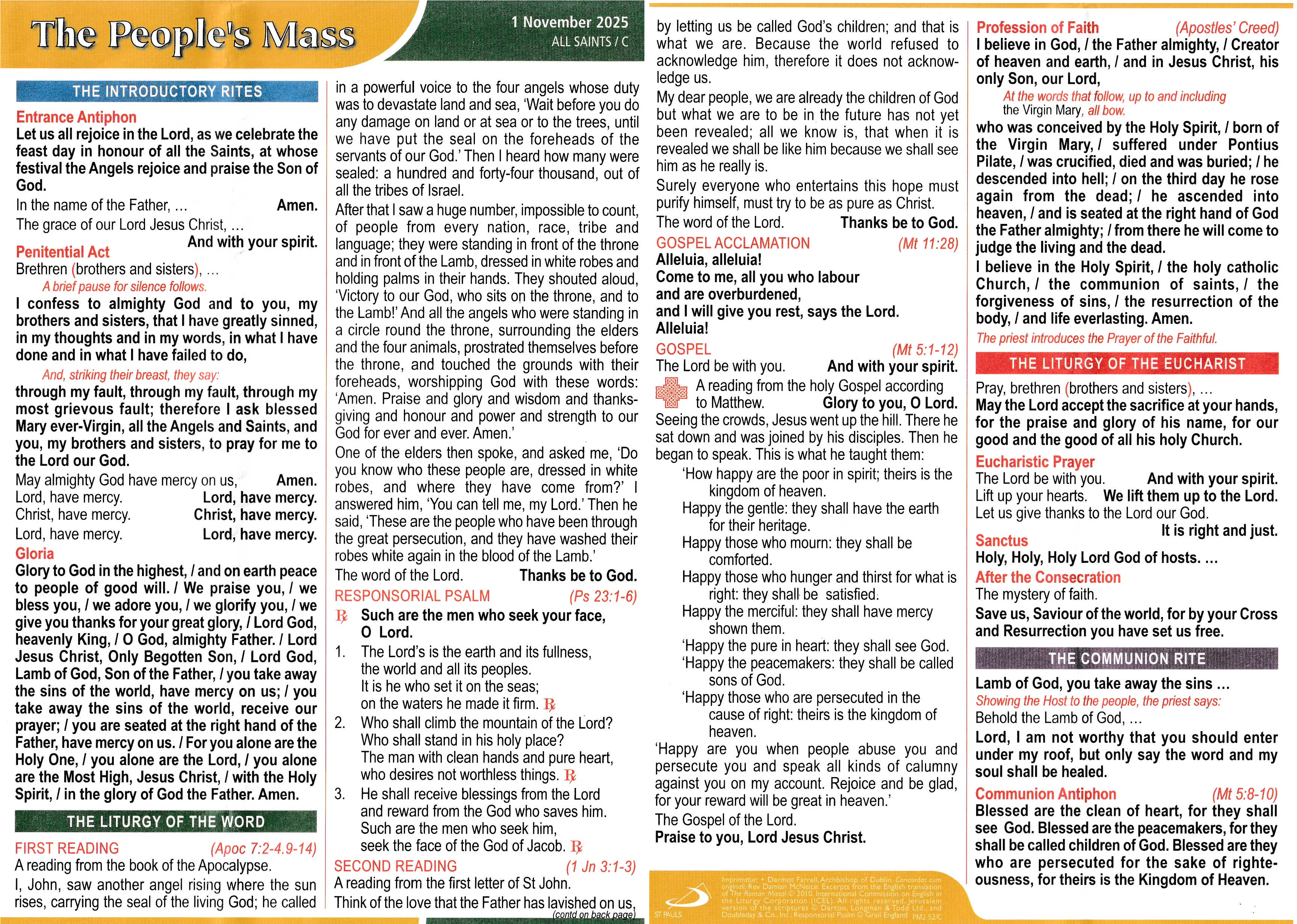 This will allow you to print each People's Mass or local newsletter should you wish to. The latest versions are in bold.