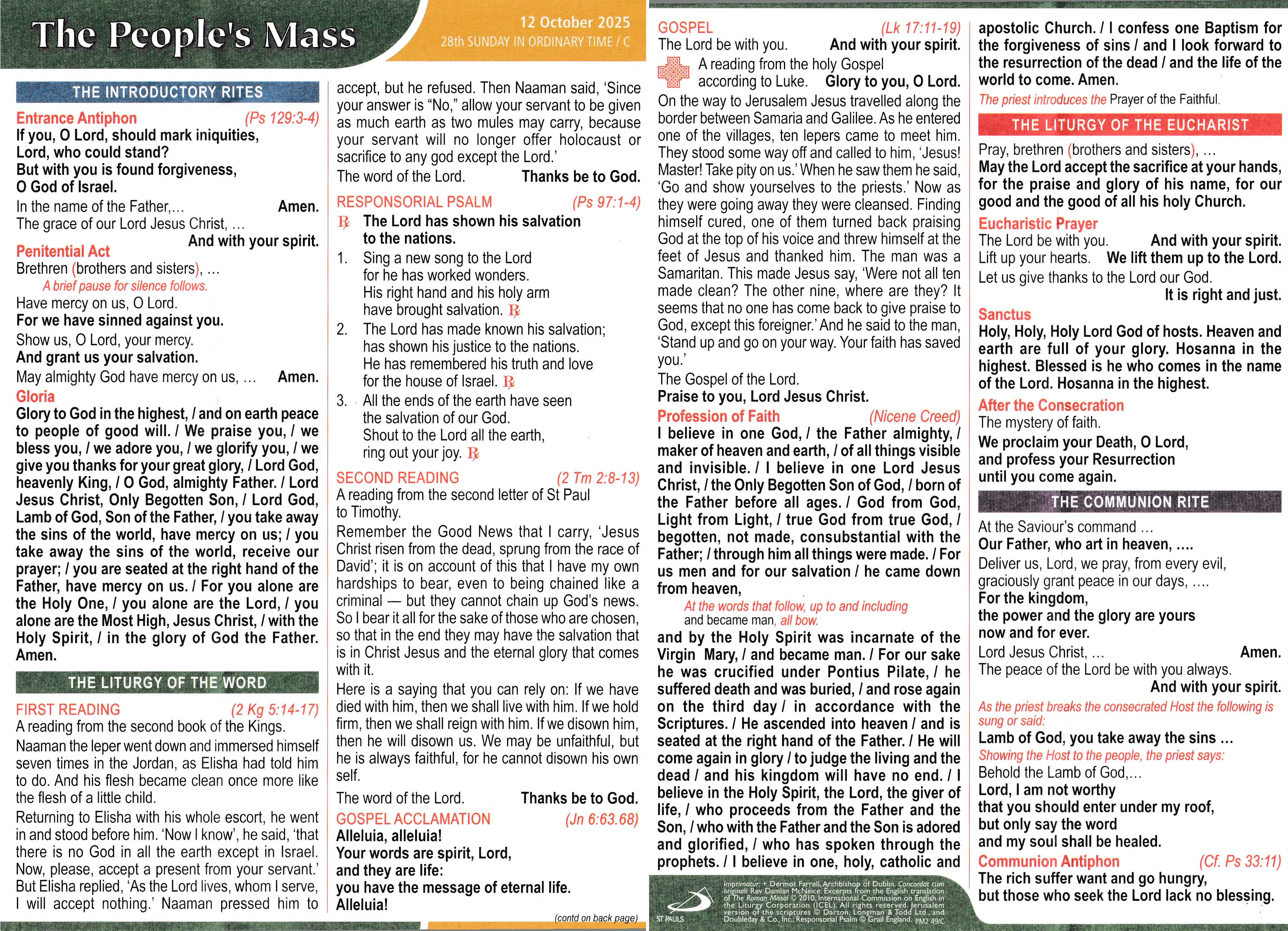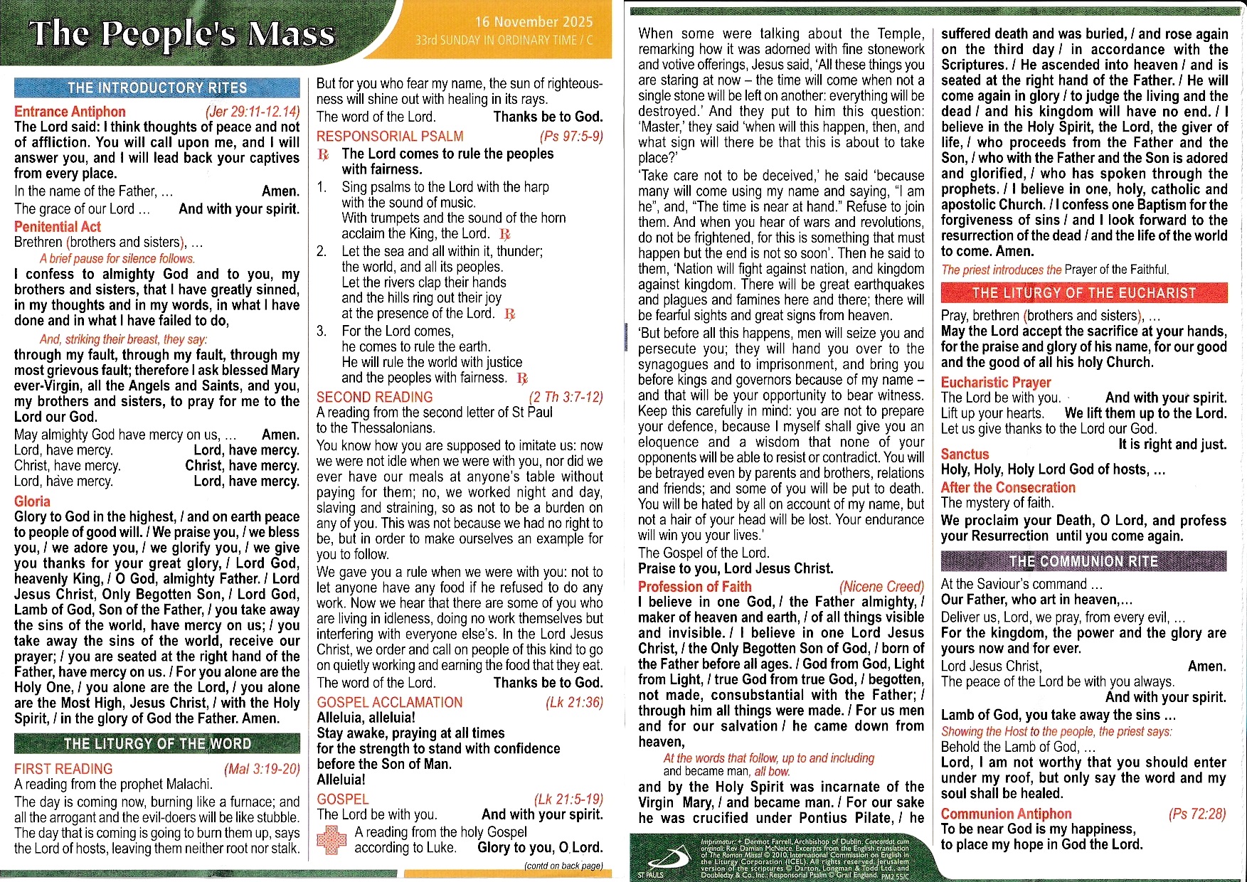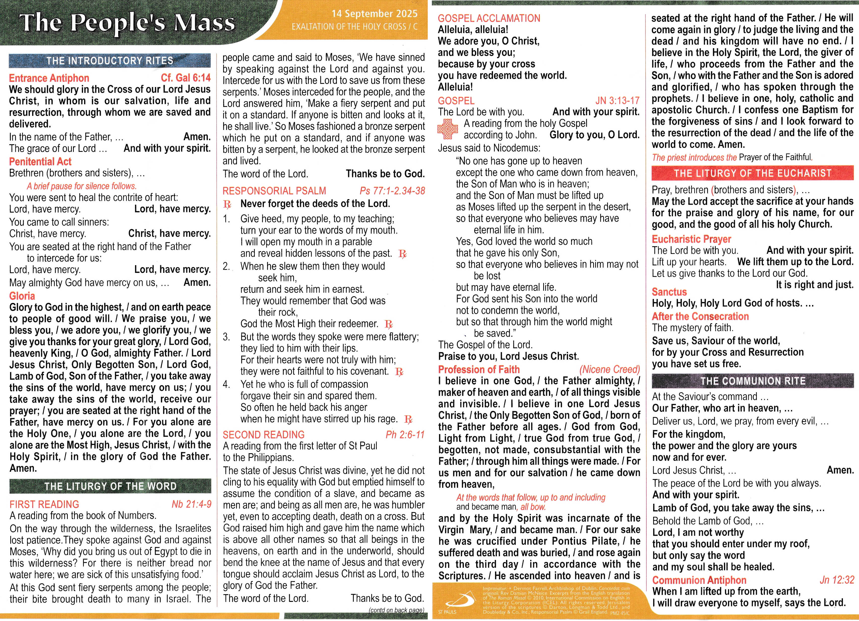This will allow you to print each People's Mass or local newsletter should you wish to. The latest versions are in bold.