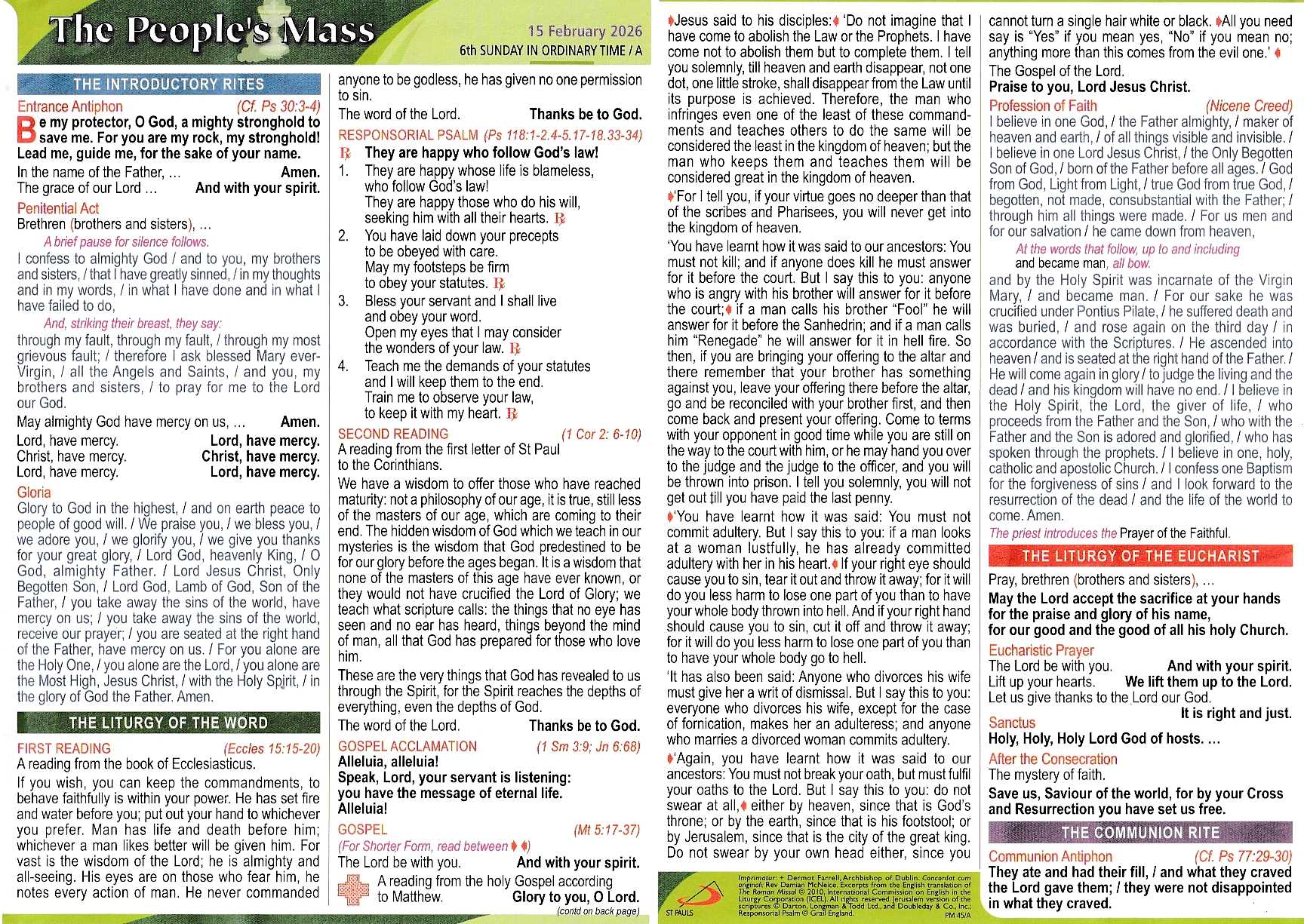 The People's Mass liturgy side of the weekly newsletter is provided here as a simple image. The local news side is provided here in a format known as PDF. To read the latter, if you don't already have it, you will need to download the free Adobe Reader, which you will find if you click on the following icon:![]()