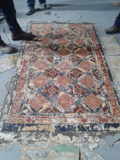 The beautiful Victorian mosaic discovered under the church floor during the renovations has been restored and is now displayed under a glass cover. Click here to see a photograph of it.