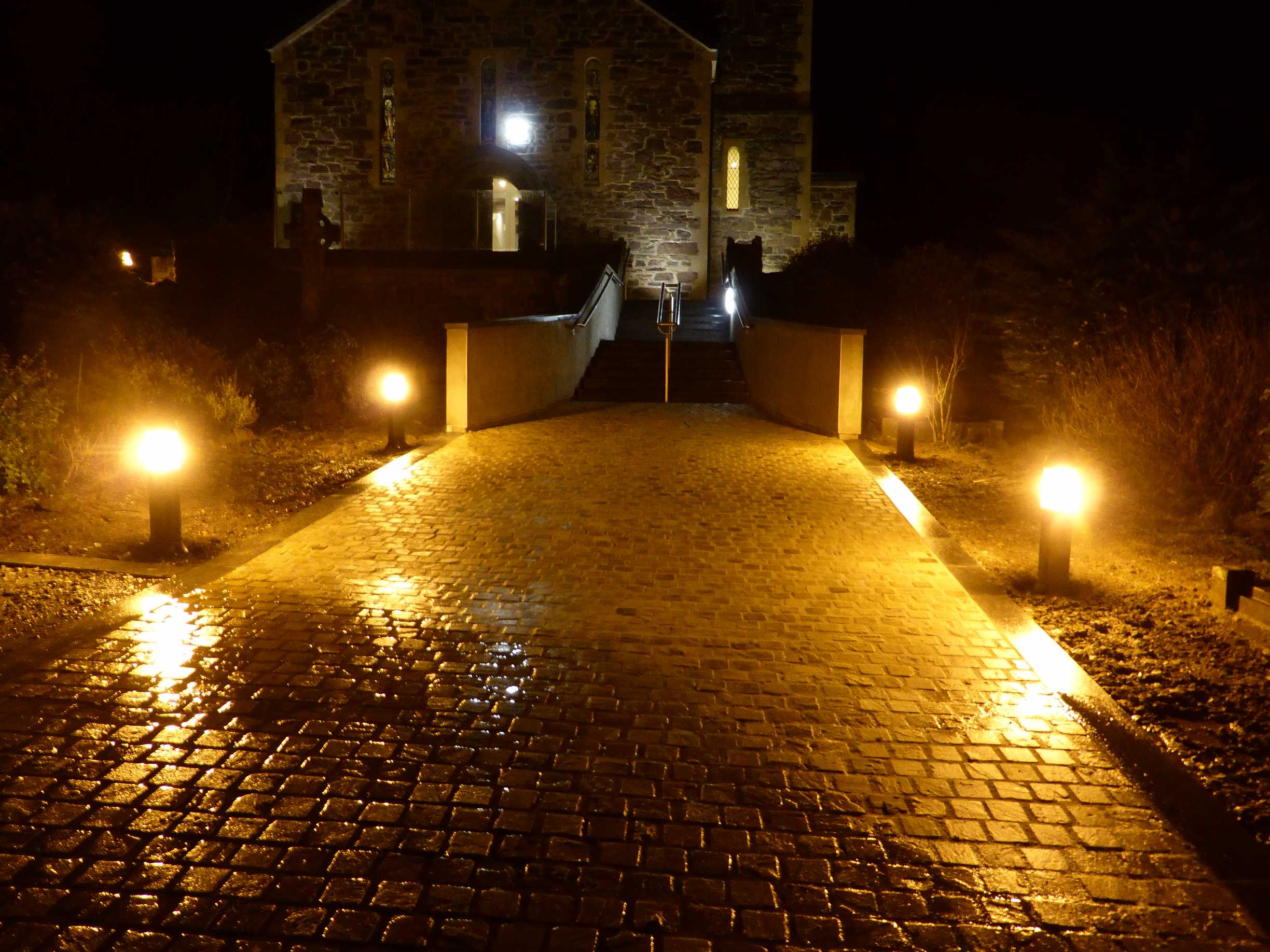 The lighting and sound systems are being upgraded, and wheelchair and vehicular access is being provided. Among many other improvements, a new spacious entrance has been created in the gable facing the village, which will greatly improve entering and exiting, and will be of particular assistance at funerals.